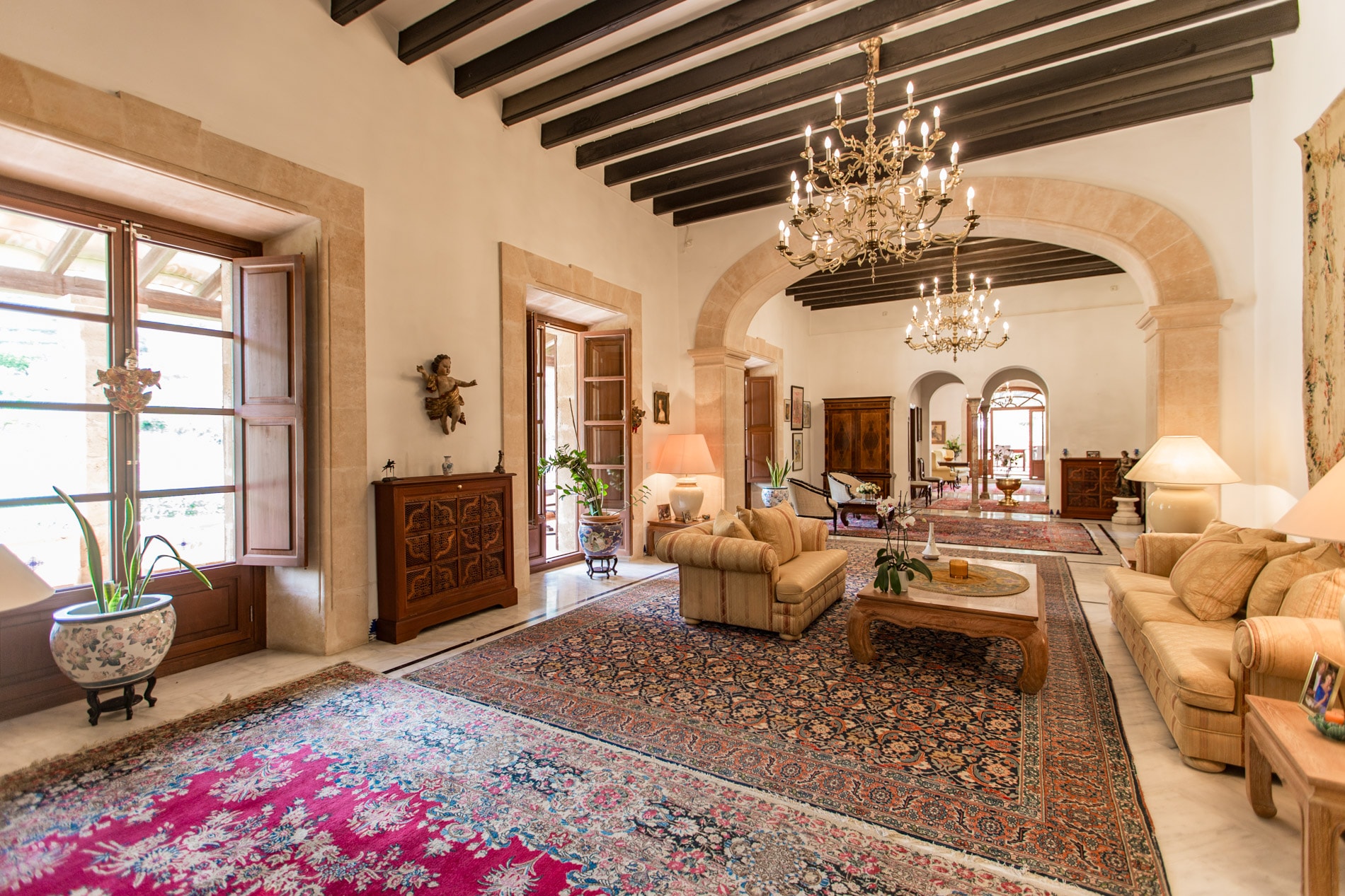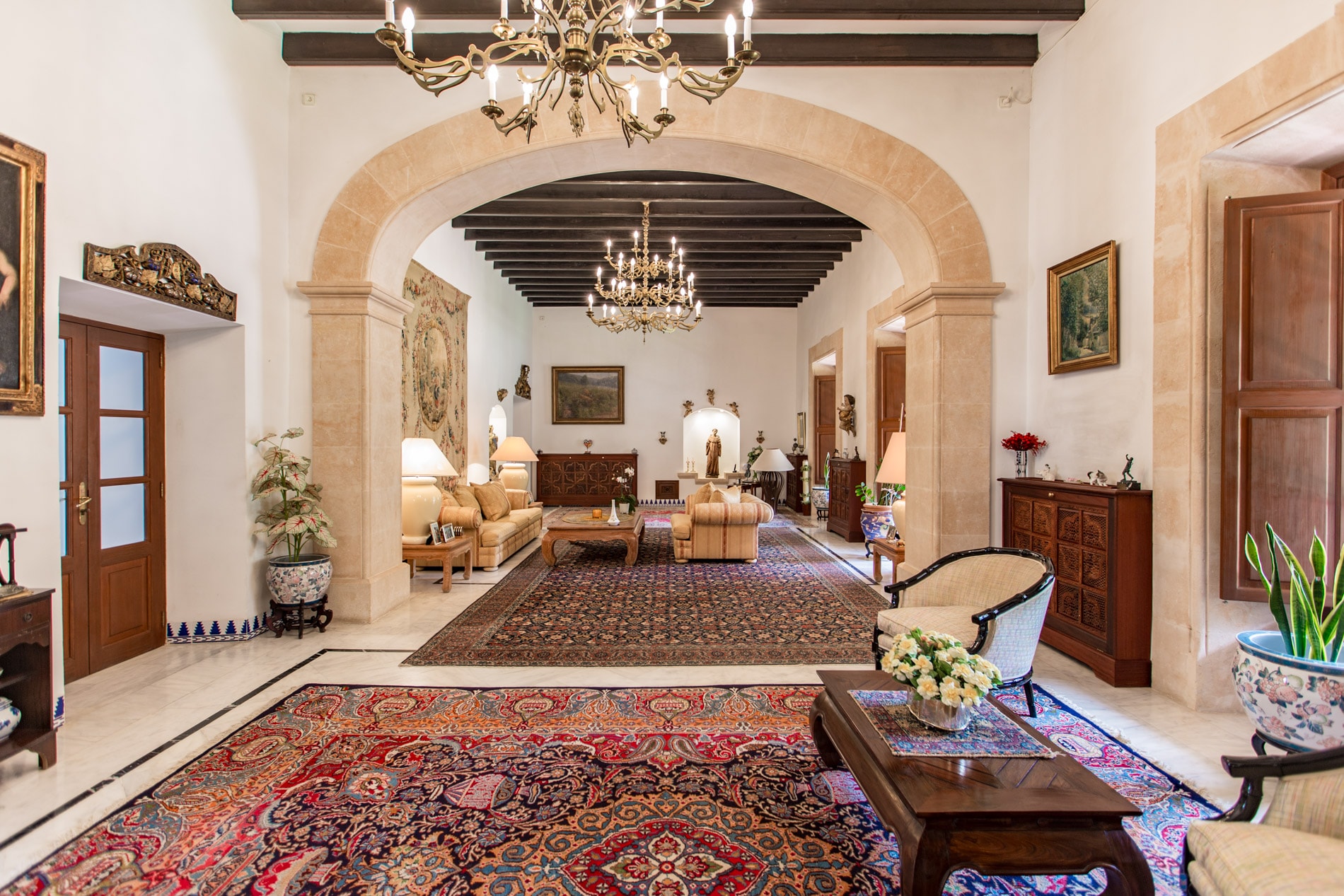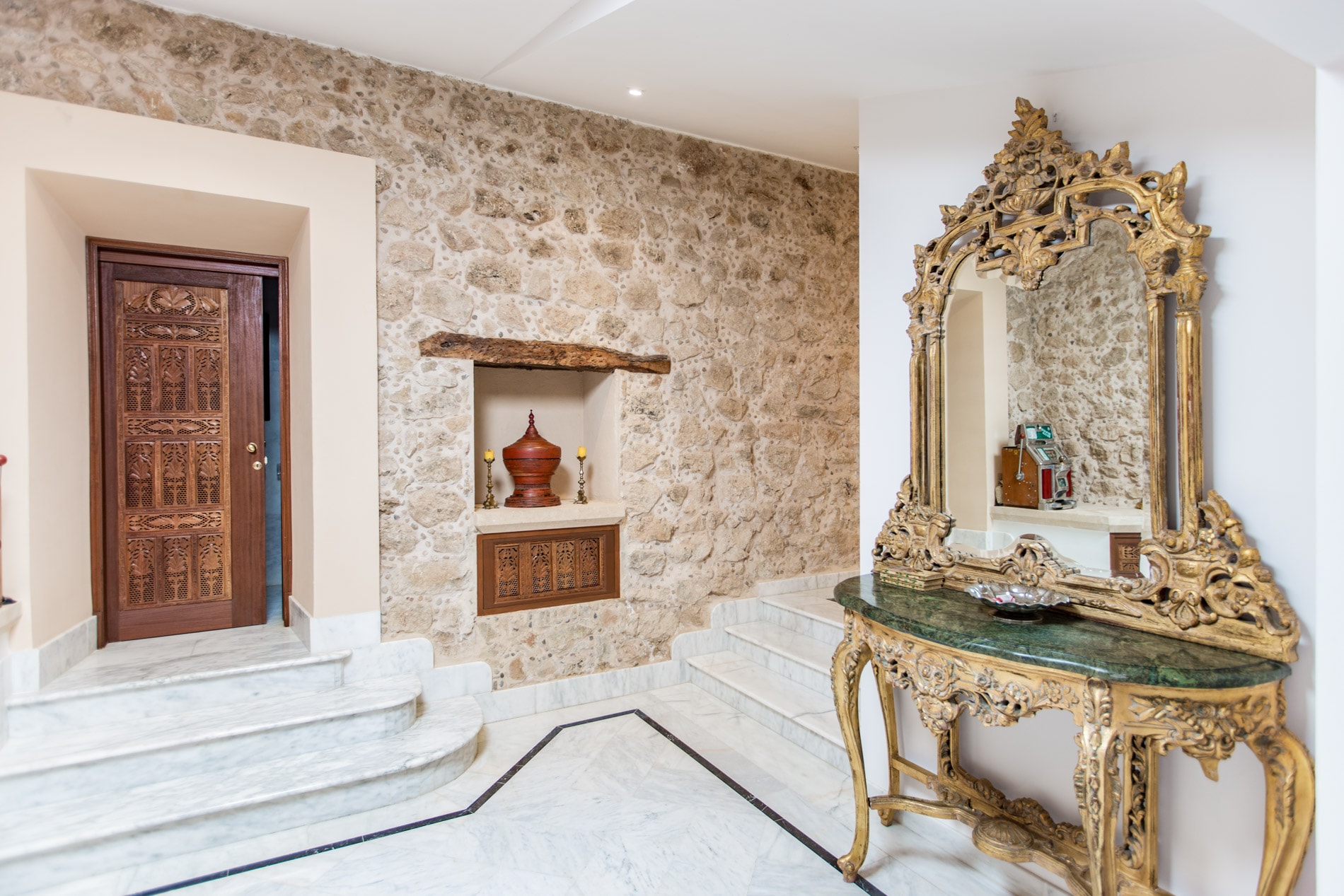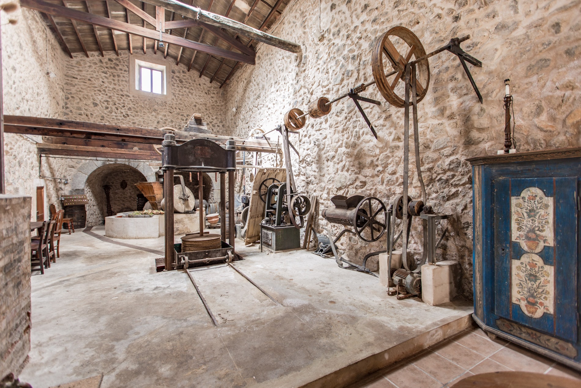 The luxurious amenities include a large swimming pool with panoramic views, a tennis court, stables, a 200-year-old chapel, and an original olive press. As with all historic estates in Mallorca, self-sufficiency is highly valued here, providing tax advantages for the owner. Fruit and vegetables are grown, sheep and chickens are raised, and around 1,200 liters of olive oil are produced annually. The property also boasts its own water well and a hunting license.